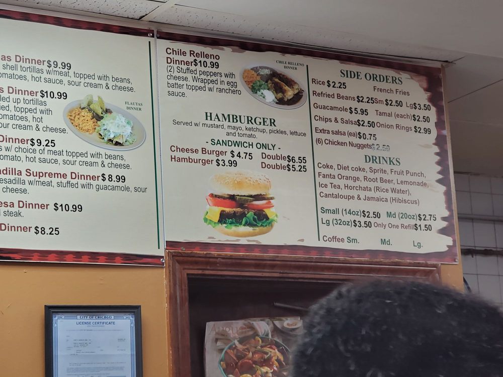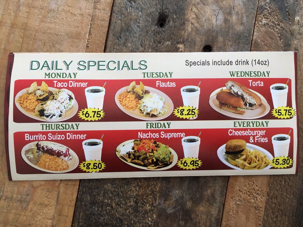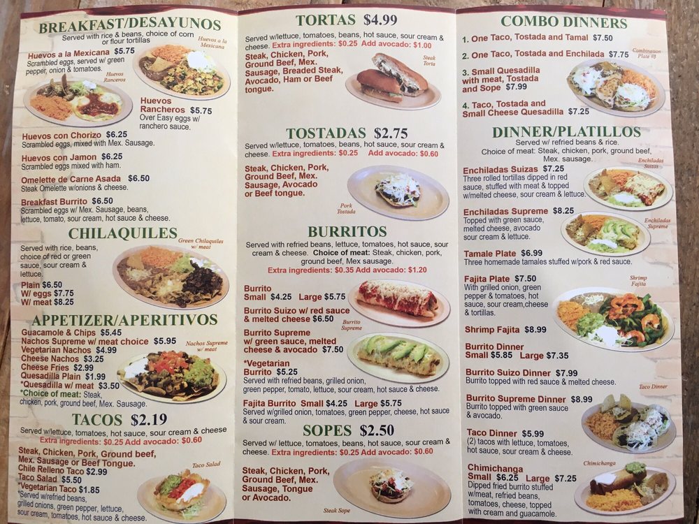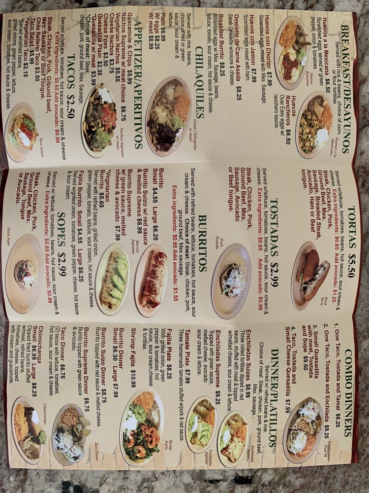 Steak, Chicken, Pork, Ground Beef, Mex. Sausage, Breaded Steak, Ham, Beef Tongue, Avocado